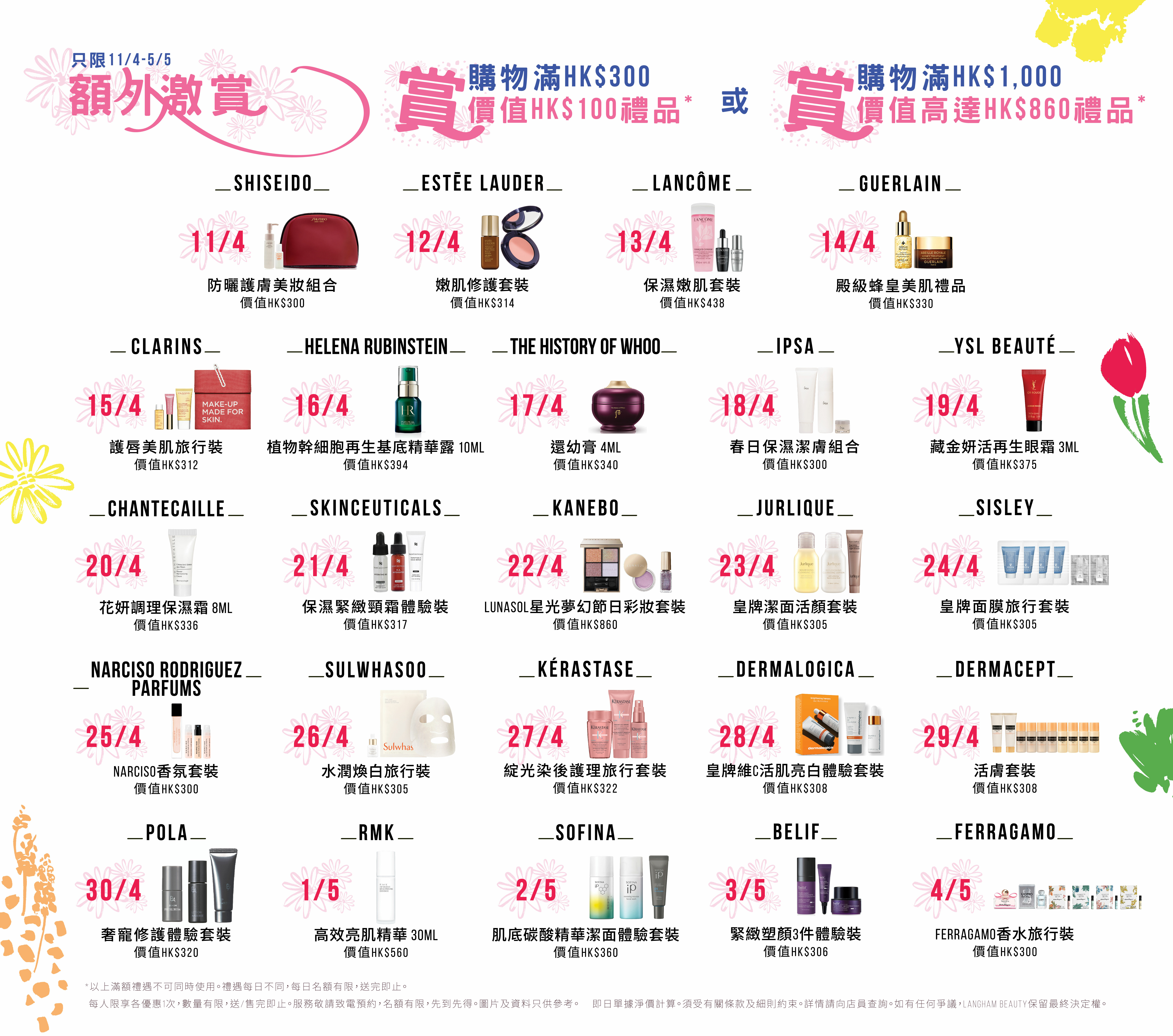 購物滿HK$1,000,即可獲贈價值高達HK$860禮品 (只限4月11日至5月5日)*